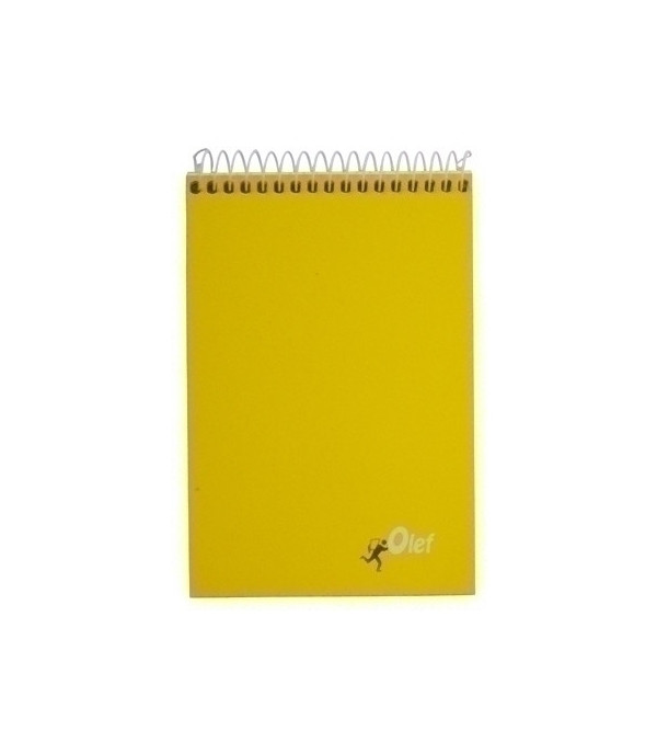 Bloc de bolsillo de tapa blanda de cartón de 400gr./m2 plastificado. Reverso gris. Contracubierta en cartón de 500gr./m2 estucado blanco. Papel blanco 60 gr./m2 con rayado en azul. Encuadernado con espiral de alambre blanco nylonizado blanco. Colores surtidos. Disponible en octavo, doceavo y dieciseisavo. 80 hojas.