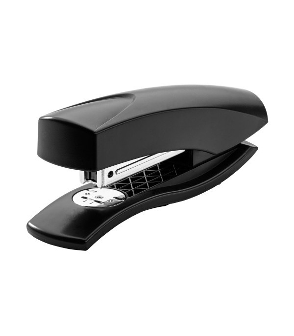 Grapadora ergonómica de plástico con capacidad para grapar hasta 15 hojas, con grapado cerrado (permanente) o grapado abierto (temporal), gracias a la sufridera rotativa, Además ofrece de la posibilidad de clavar. Su mecanismo de apertura superior facilita la colocación de las grapas 24/6 o 26/6 en el cargador.