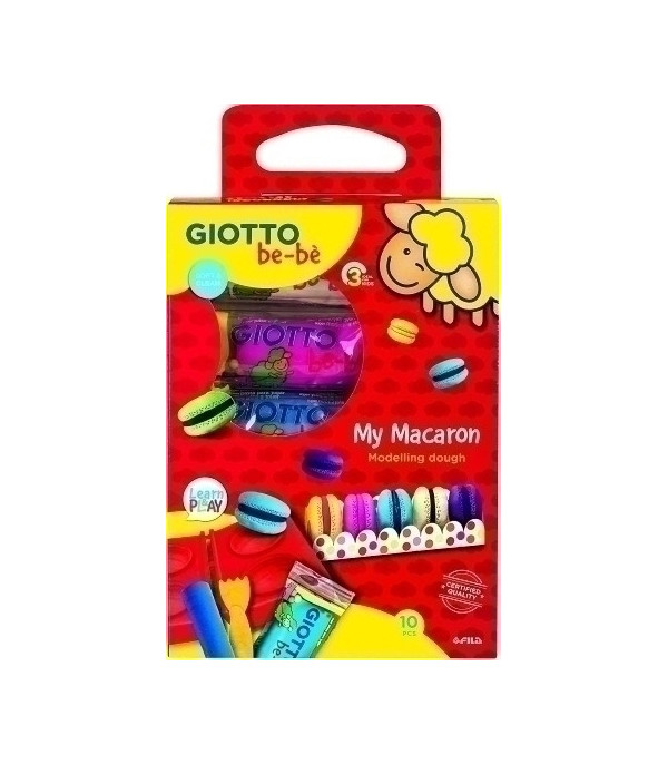 Completos kits Giotto be-bè con pasta para jugar que contienen todo lo necesario para preparar unos deliciosos macarons. La pasta para jugar Giotto be-bè está realizada a base de ingredientes naturales para jugar con toda tranquilidad y es ideal para desarrollar la destreza manual de los más pequeños, segura y dermatológicamente testada. No mancha y no ensucia. Contiene: 6 barras de plastilina, 1 rodillo, 1 cuchillo, un molde de macarons y un cartón expositor de macarons.