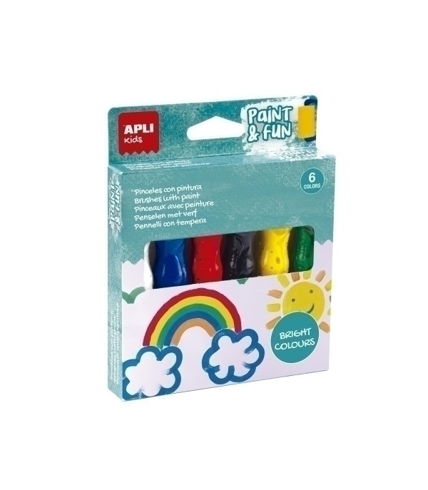 Témperas en tubo con pincel en colores brillantes para pintar con precisión. Colores: blanco, azul, rojo, negro, amarillo y verde. Un solo producto que une el pincel y la pintura, sin la necesidad de lavarlo todo una vez finalizada la actividad. Las actividades con pintura poseen un alto valor didáctico: favorece el desarrollo de las artes creativas, potencian la concentración, la imaginación y la sensibilidad, y les ayudan a ser más tolerantes y colaborativos al realizar una actividad en grupo. A partir de 3 años.